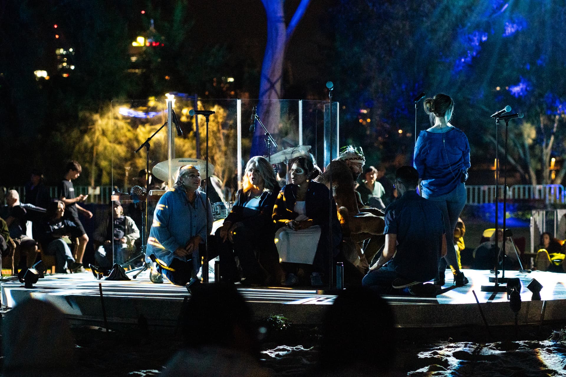 The experience combined light projections, fire, and live performance, adapted to highlight the deep connection between the natural world and Noongar culture.